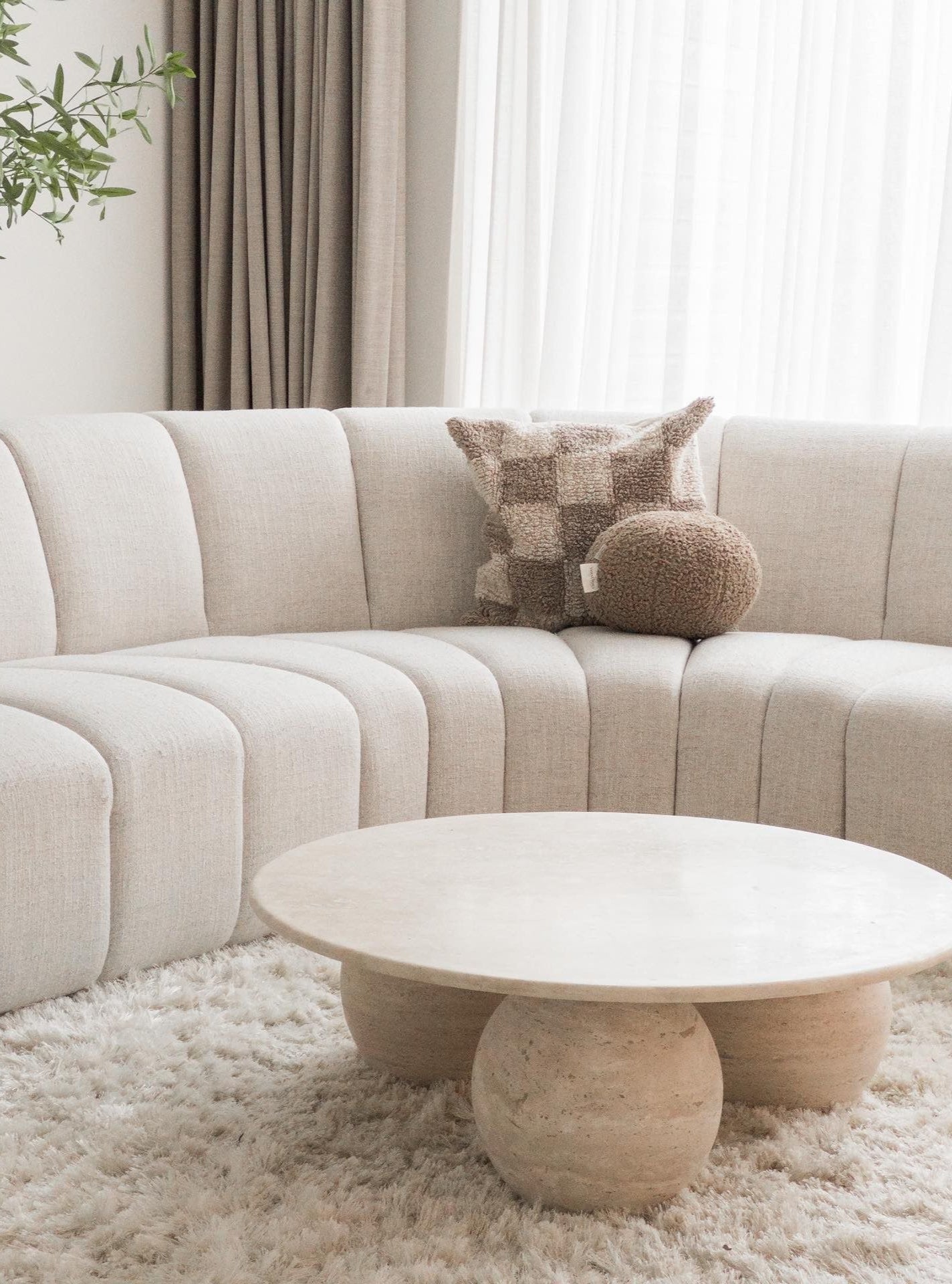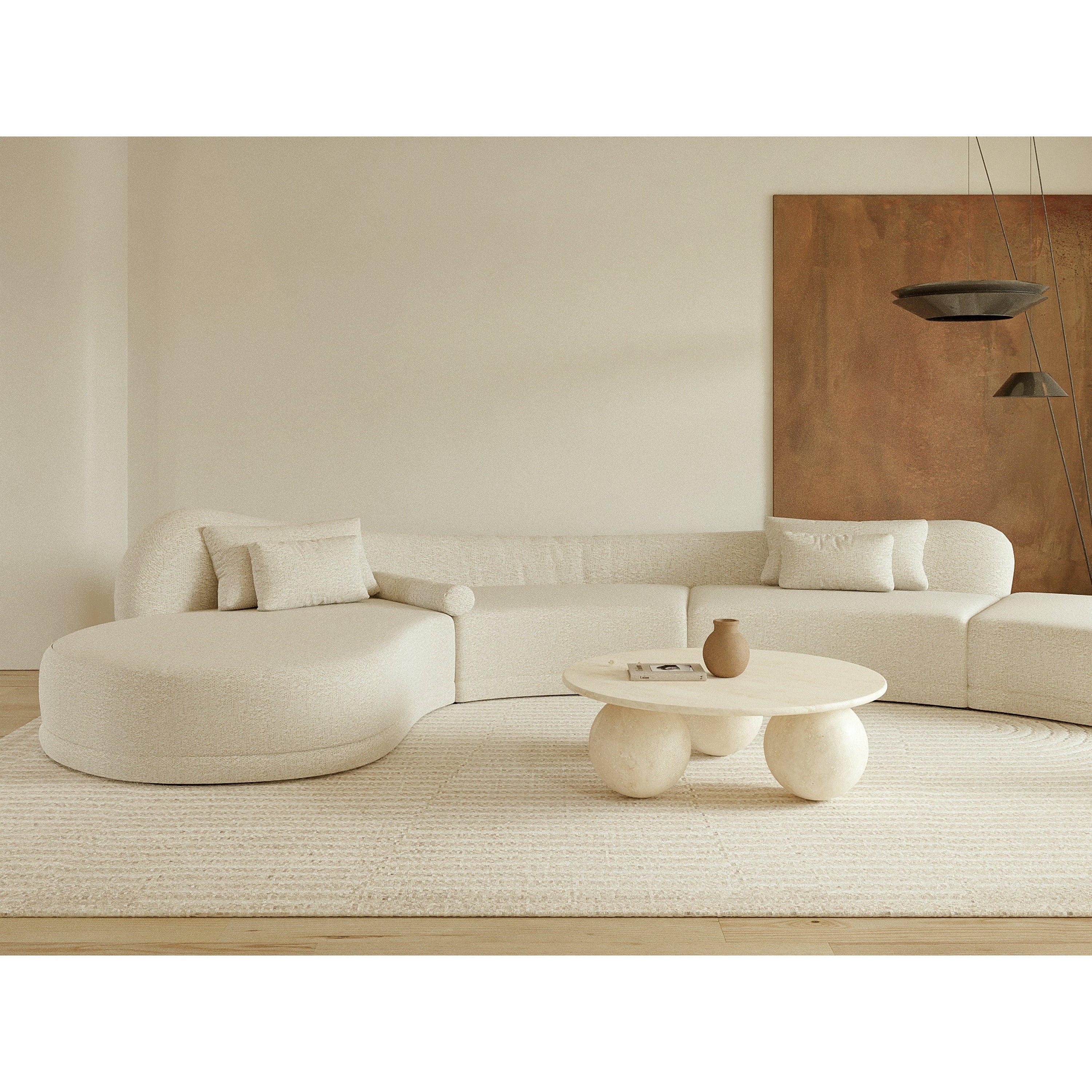 Der Couchtisch Lunar aus Travertin verleiht Ihrem Wohnzimmer einen luxuriösen und natürlichen Look. Mit seinen klaren Linien und seiner einzigartigen Textur bietet dieser Tisch sowohl Stil als auch Robustheit. Das Travertinmaterial sorgt für einen zeitlosen Look und eine lange Lebensdauer.