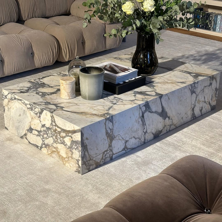 Arena Glass Coffee Table Organic - Travertine Spheres