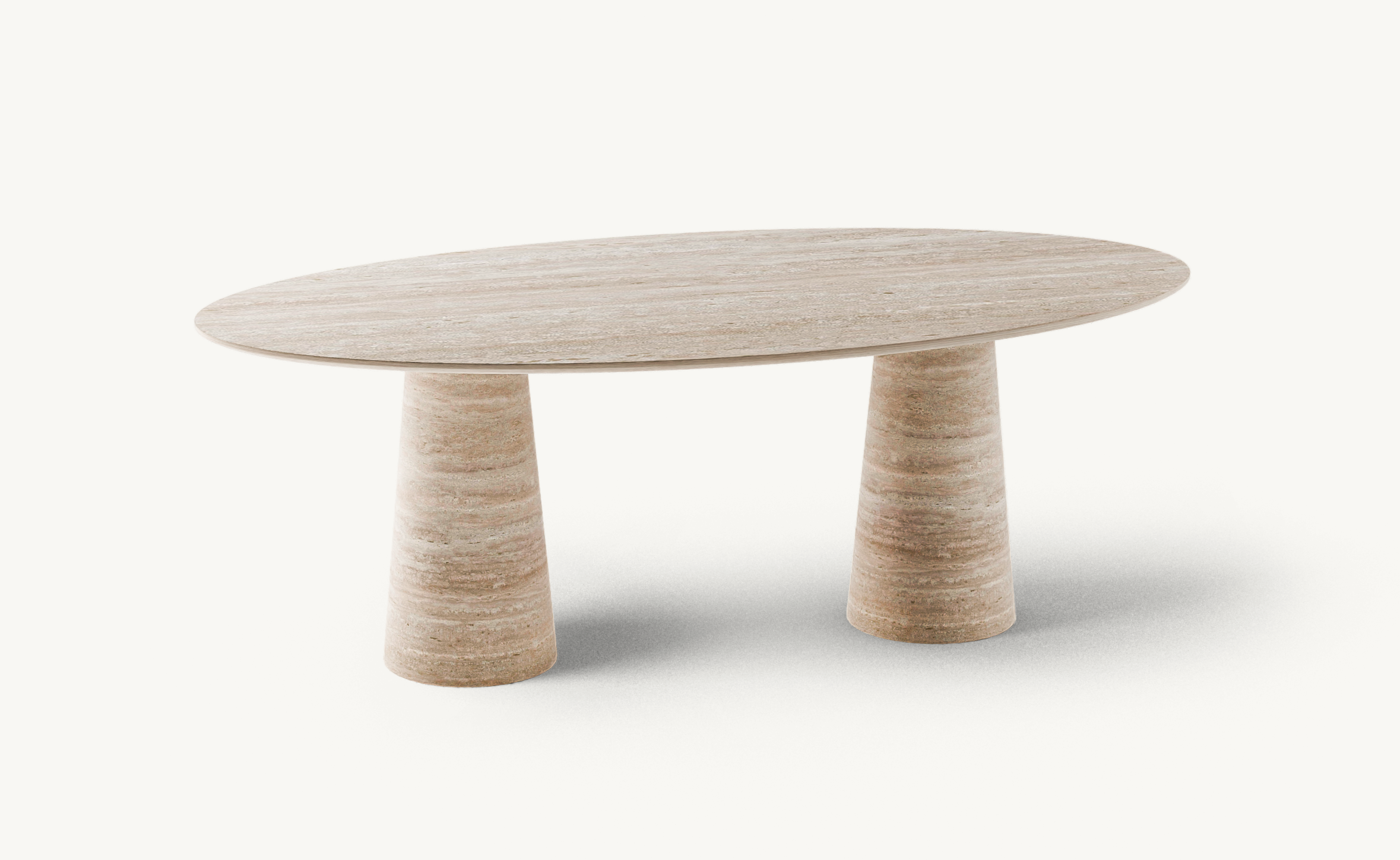 Travertine oval dining table Dyara brings natural elegance to any space. The unique Pebble Small design, combined with a honed finish, gives this table a timeless and sophisticated look. Ideal for modern and classic interiors.