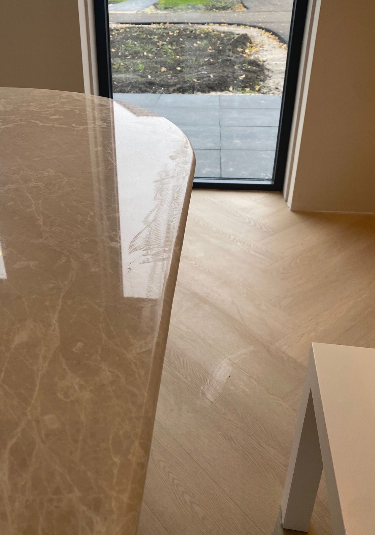 Met een toewijding aan perfectie en precisie, begint het ambachtelijke proces. Onze eigen ervaren vakmensen brengen de stenen tot leven, elk met de hand bewerkt en gevormd tot een meesterwerk van vakmanschap. Van het polijsten van de oppervlakken tot het plaatsen van de fijnste details, elke stap wordt met de grootste zorg uitgevoerd. Het is hier dat we een steen omtoveren naar een tafel waar van eten genoten wordt, drinken gemorst wordt en herinneringen gemaakt worden. Het kost tijd - we haasten ons niet, want we geloven dat ware schoonheid tijd en aandacht verdient. Het resultaat is een tafel die niet alleen functioneel is, maar ook een symbool van ongeëvenaarde luxe en verfijning.